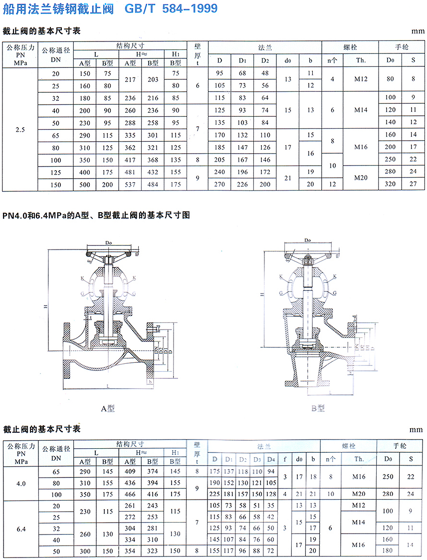 船用法蘭鑄鋼截止閥GB/T584-1999