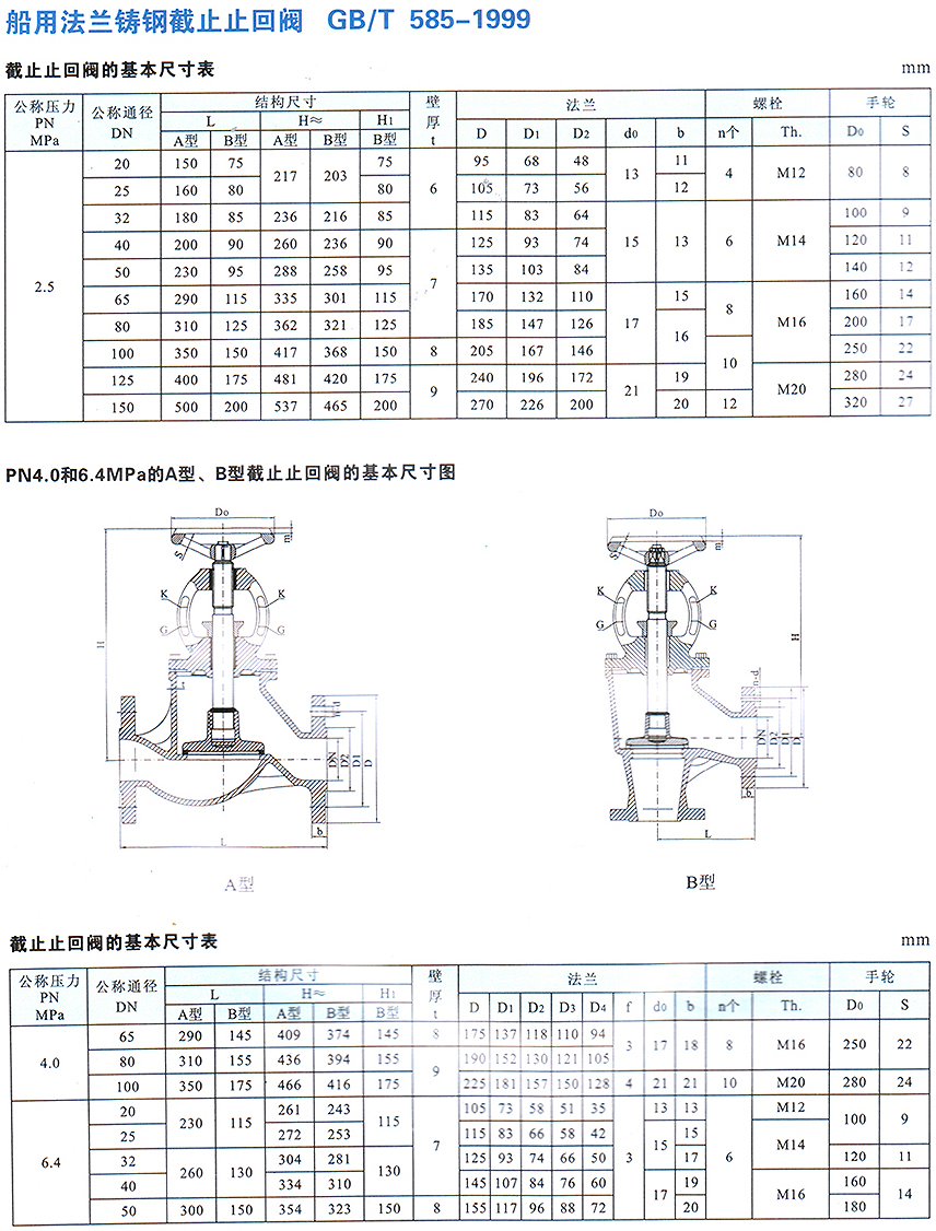 船用法蘭鑄鋼截止止回閥GB/T585-1999